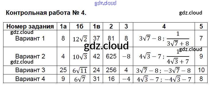 Ответ на задание 4 Контрольно-измерительные материалы (КИМ) Алгебра за 8 (восьмой) класс Глазков, Гаиашвили, Ахременкова 2014