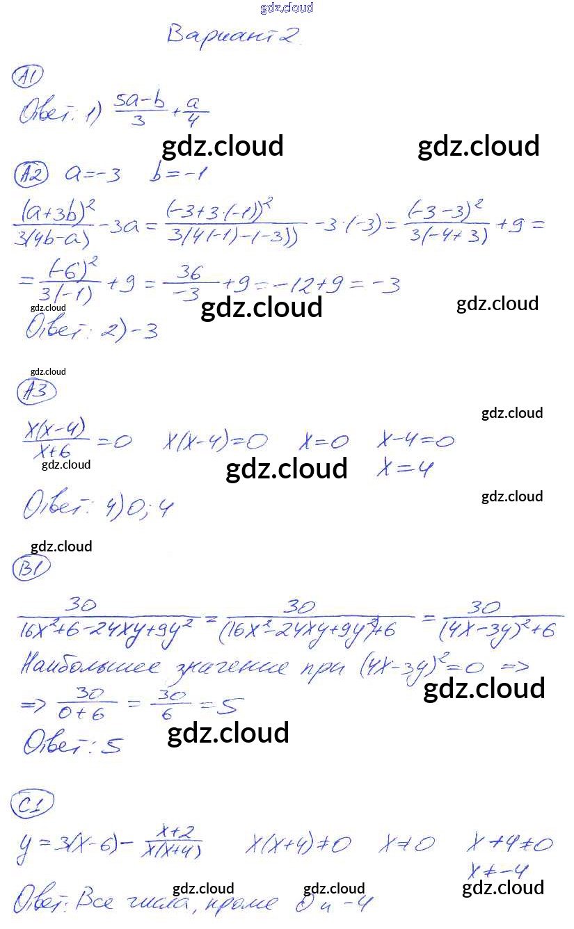 Ответ на задание 2 Самостоятельные и контрольные работы Алгебра за 8 (восьмой) класс Глазков, Гаиашвили УМК 2012