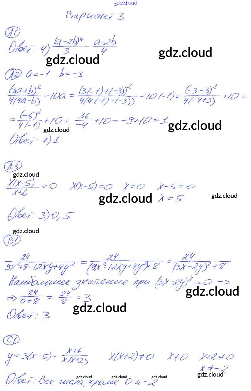 Ответ на задание 3 Самостоятельные и контрольные работы Алгебра за 8 (восьмой) класс Глазков, Гаиашвили УМК 2012