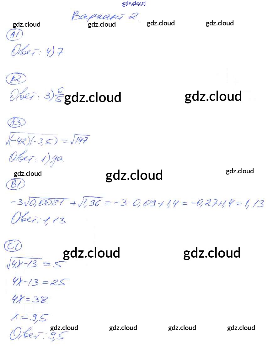 Ответ на задание 2 Самостоятельные и контрольные работы Алгебра за 8 (восьмой) класс Глазков, Гаиашвили УМК 2012