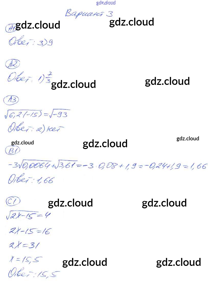Ответ на задание 3 Самостоятельные и контрольные работы Алгебра за 8 (восьмой) класс Глазков, Гаиашвили УМК 2012