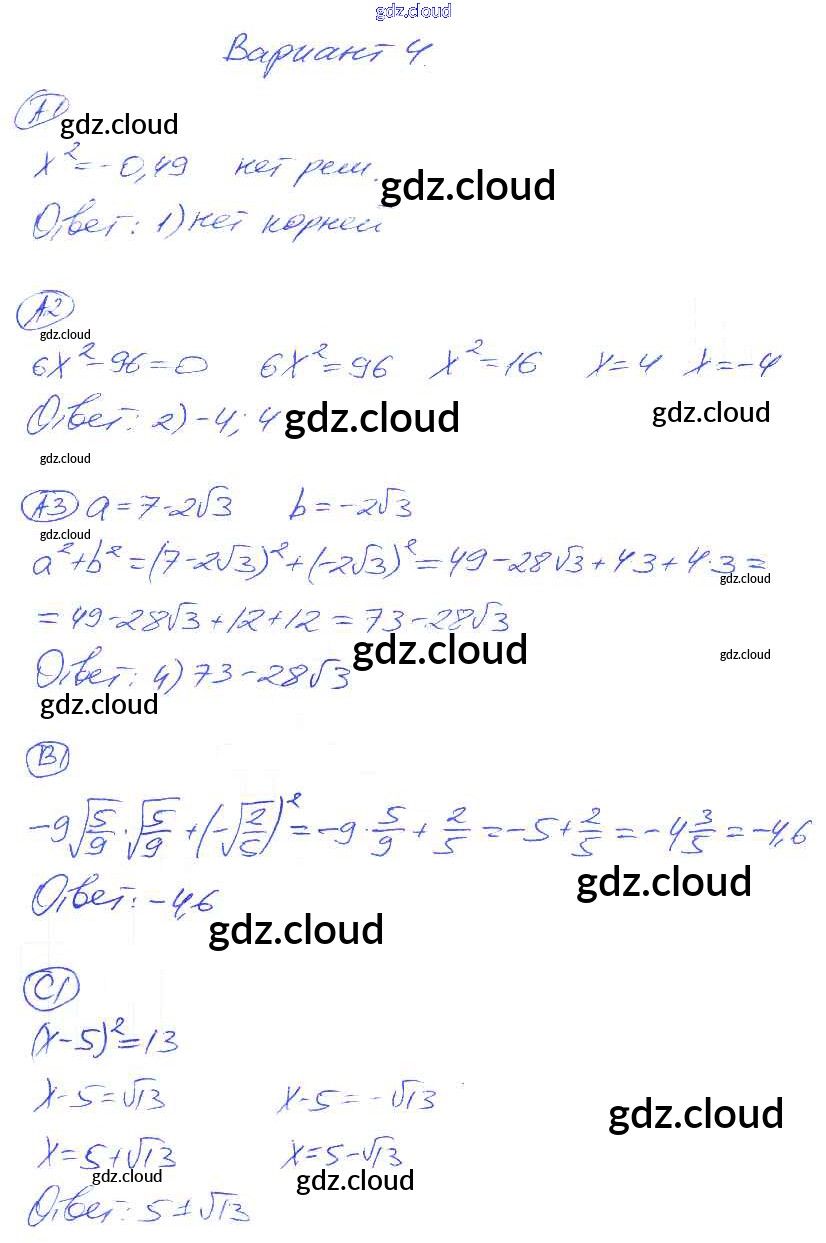 Ответ на задание 4 Самостоятельные и контрольные работы Алгебра за 8 (восьмой) класс Глазков, Гаиашвили УМК 2012