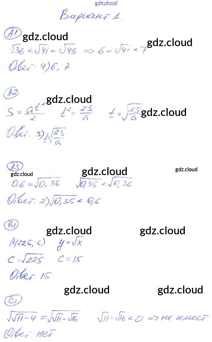Ответ на задание 1 Самостоятельные и контрольные работы Алгебра за 8 (восьмой) класс Глазков, Гаиашвили УМК 2012