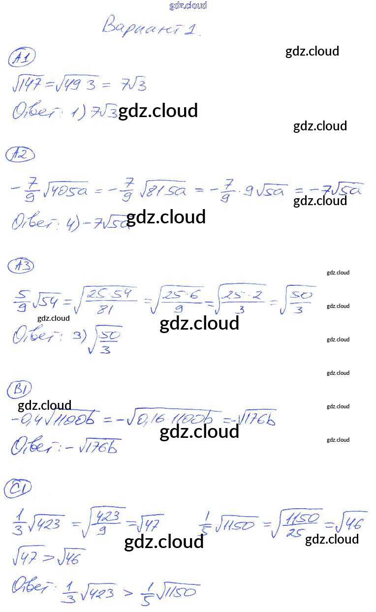 Ответ на задание 1 Самостоятельные и контрольные работы Алгебра за 8 (восьмой) класс Глазков, Гаиашвили УМК 2012