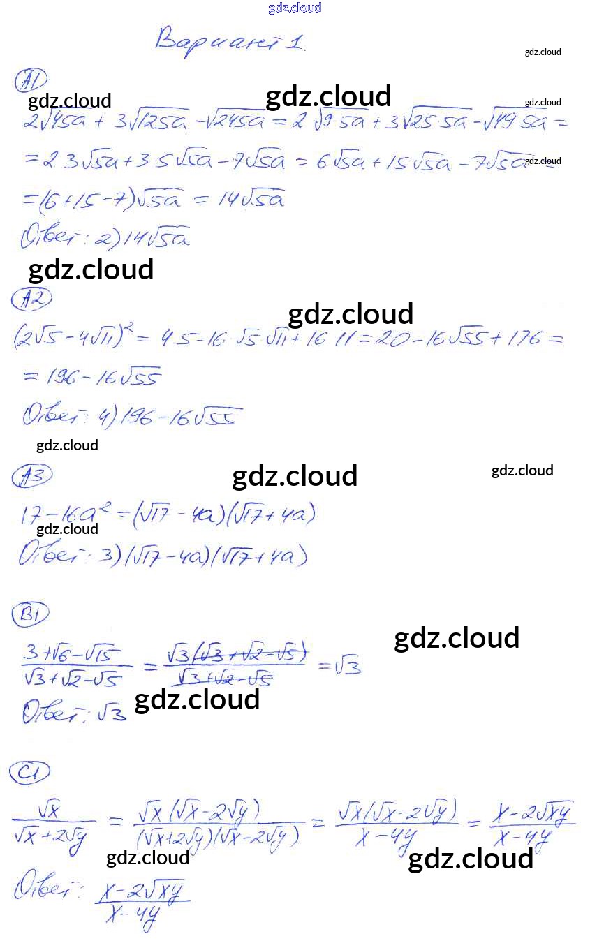 СР-15. Варианты Ответы к Cамостоятельным работам по Алгебре 8 класс Самостоятельные и контрольные работы Глазков УМК Экзамен
