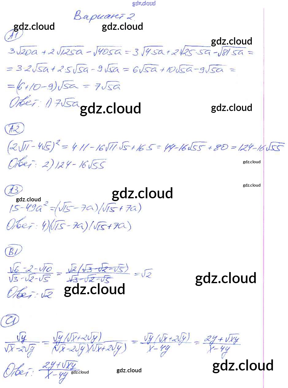 СР-15. Варианты Ответы к Cамостоятельным работам по Алгебре 8 класс Самостоятельные и контрольные работы Глазков УМК Экзамен
