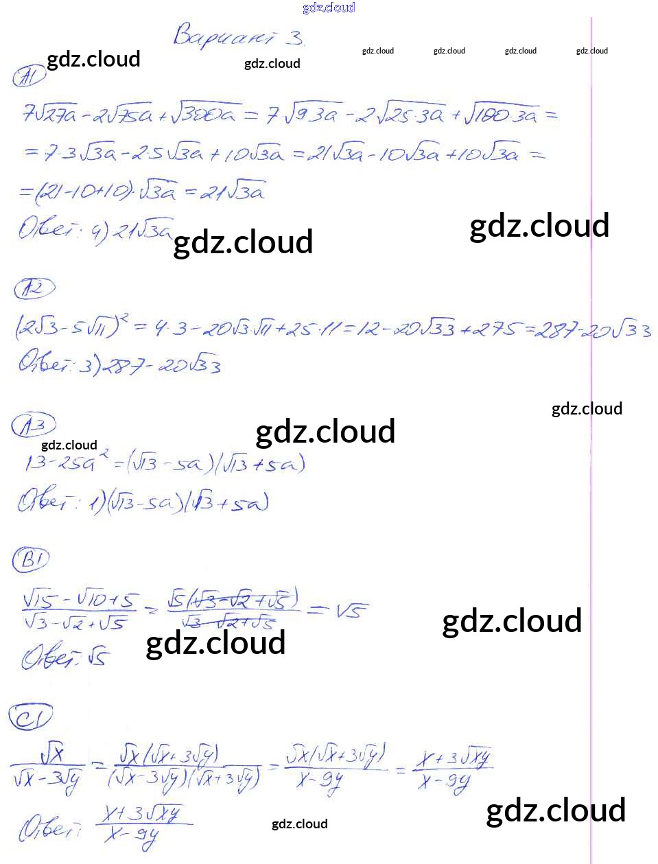 Ответ на задание 3 Самостоятельные и контрольные работы Алгебра за 8 (восьмой) класс Глазков, Гаиашвили УМК 2012