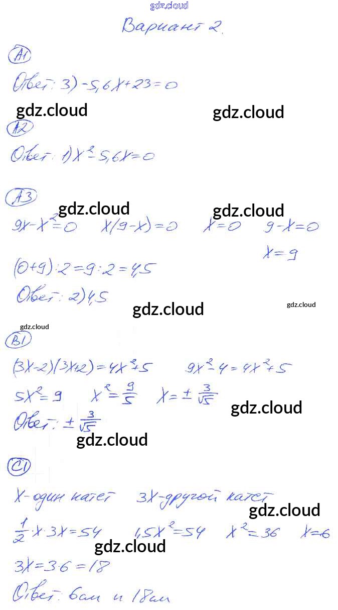 Ответ на задание 2 Самостоятельные и контрольные работы Алгебра за 8 (восьмой) класс Глазков, Гаиашвили УМК 2012