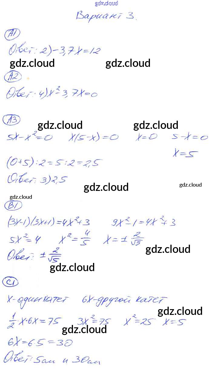 Ответ на задание 3 Самостоятельные и контрольные работы Алгебра за 8 (восьмой) класс Глазков, Гаиашвили УМК 2012