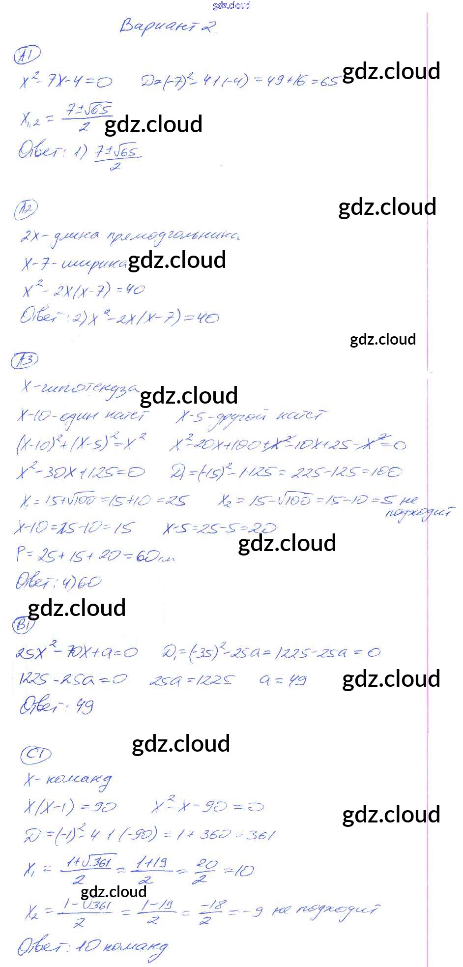 Ответ на задание 2 Самостоятельные и контрольные работы Алгебра за 8 (восьмой) класс Глазков, Гаиашвили УМК 2012