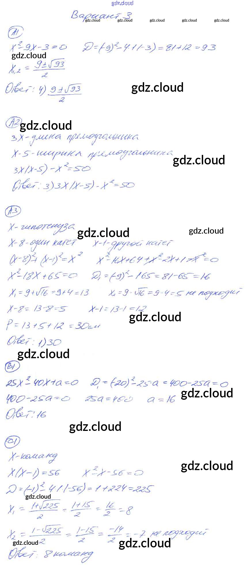 Ответ на задание 3 Самостоятельные и контрольные работы Алгебра за 8 (восьмой) класс Глазков, Гаиашвили УМК 2012