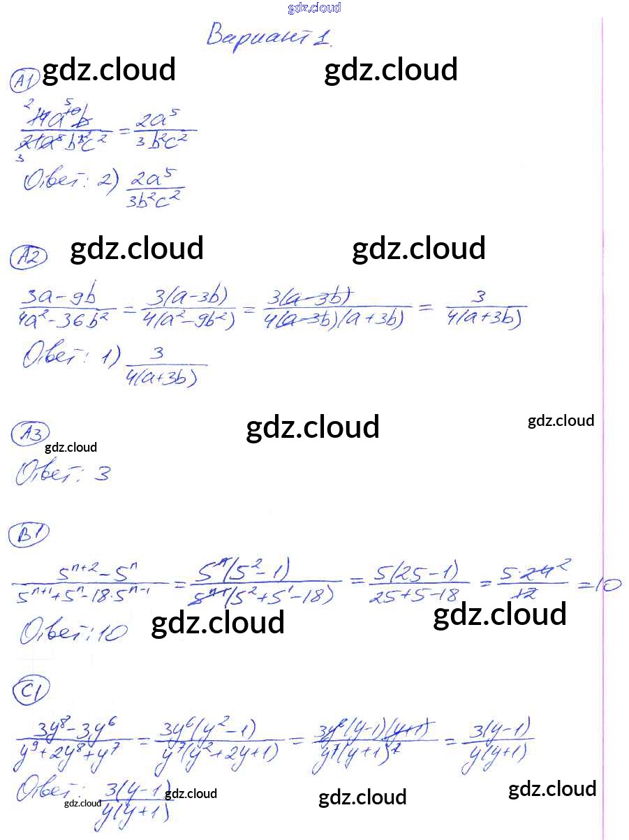 Ответ на задание 1 Самостоятельные и контрольные работы Алгебра за 8 (восьмой) класс Глазков, Гаиашвили УМК 2012