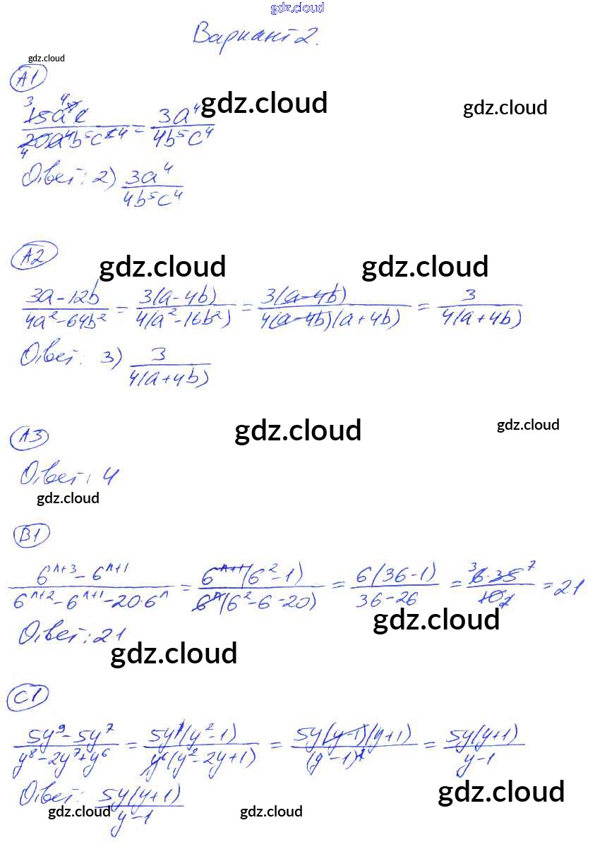 СР-2. Варианты Ответы к Cамостоятельным работам по Алгебре 8 класс Самостоятельные и контрольные работы Глазков УМК Экзамен