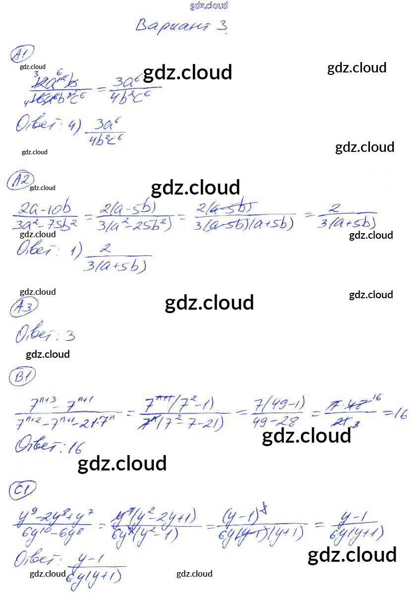Ответ на задание 3 Самостоятельные и контрольные работы Алгебра за 8 (восьмой) класс Глазков, Гаиашвили УМК 2012
