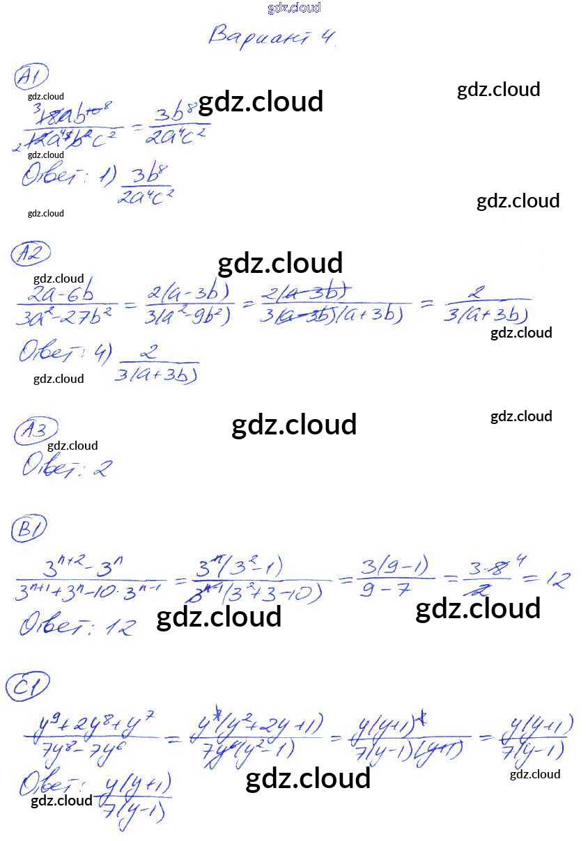 Ответ на задание 4 Самостоятельные и контрольные работы Алгебра за 8 (восьмой) класс Глазков, Гаиашвили УМК 2012