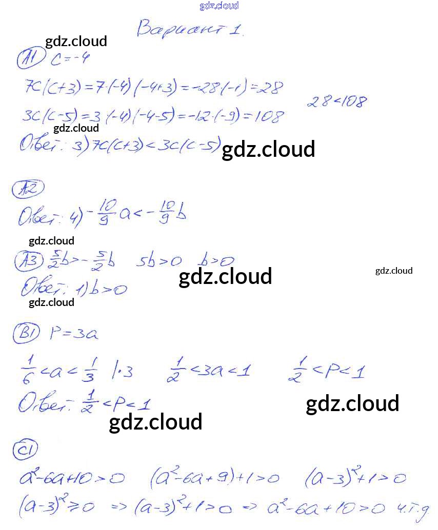 Ответ на задание 1 Самостоятельные и контрольные работы Алгебра за 8 (восьмой) класс Глазков, Гаиашвили УМК 2012