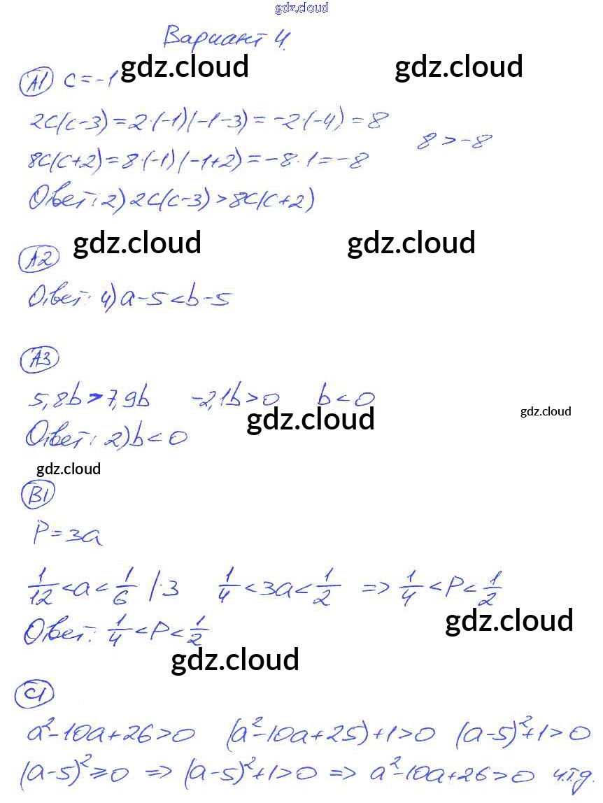 Ответ на задание 4 Самостоятельные и контрольные работы Алгебра за 8 (восьмой) класс Глазков, Гаиашвили УМК 2012