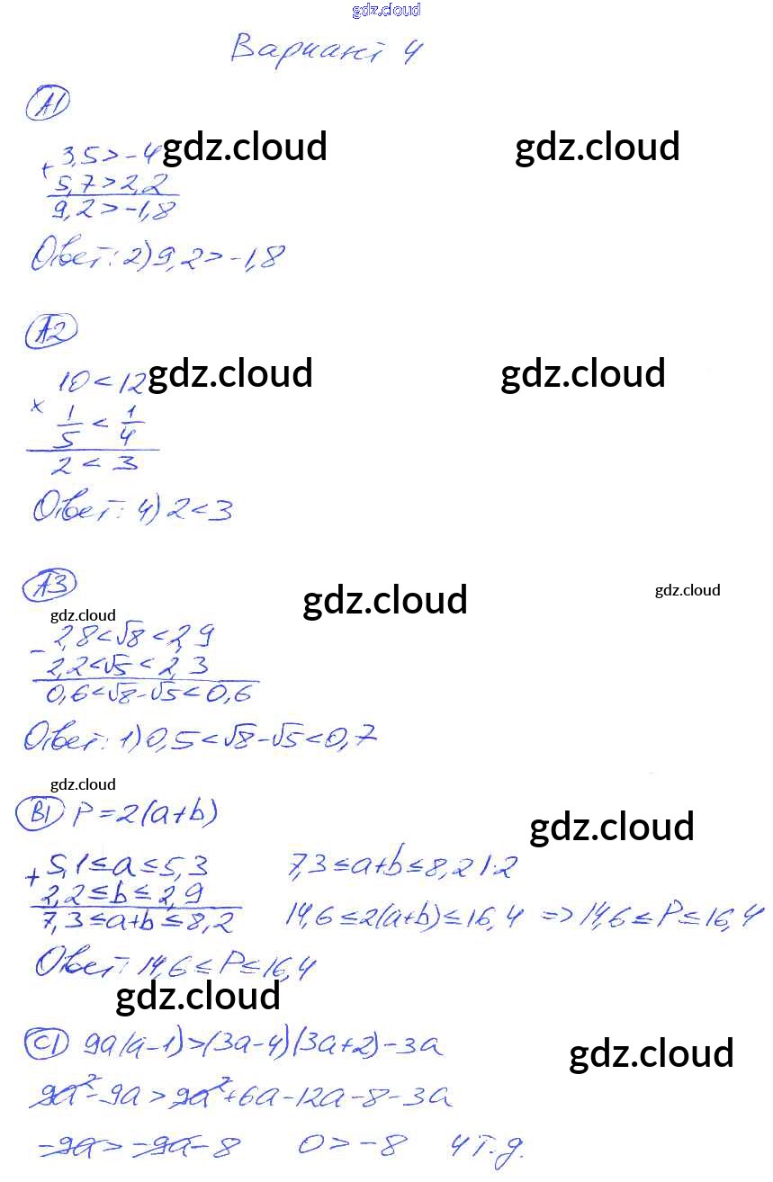 Ответ на задание 4 Самостоятельные и контрольные работы Алгебра за 8 (восьмой) класс Глазков, Гаиашвили УМК 2012
