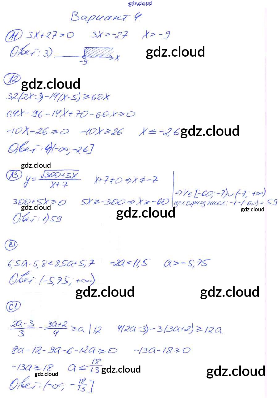 Ответ на задание 4 Самостоятельные и контрольные работы Алгебра за 8 (восьмой) класс Глазков, Гаиашвили УМК 2012