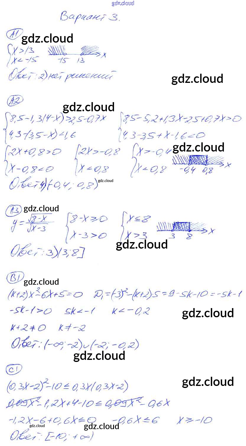 Ответ на задание 3 Самостоятельные и контрольные работы Алгебра за 8 (восьмой) класс Глазков, Гаиашвили УМК 2012