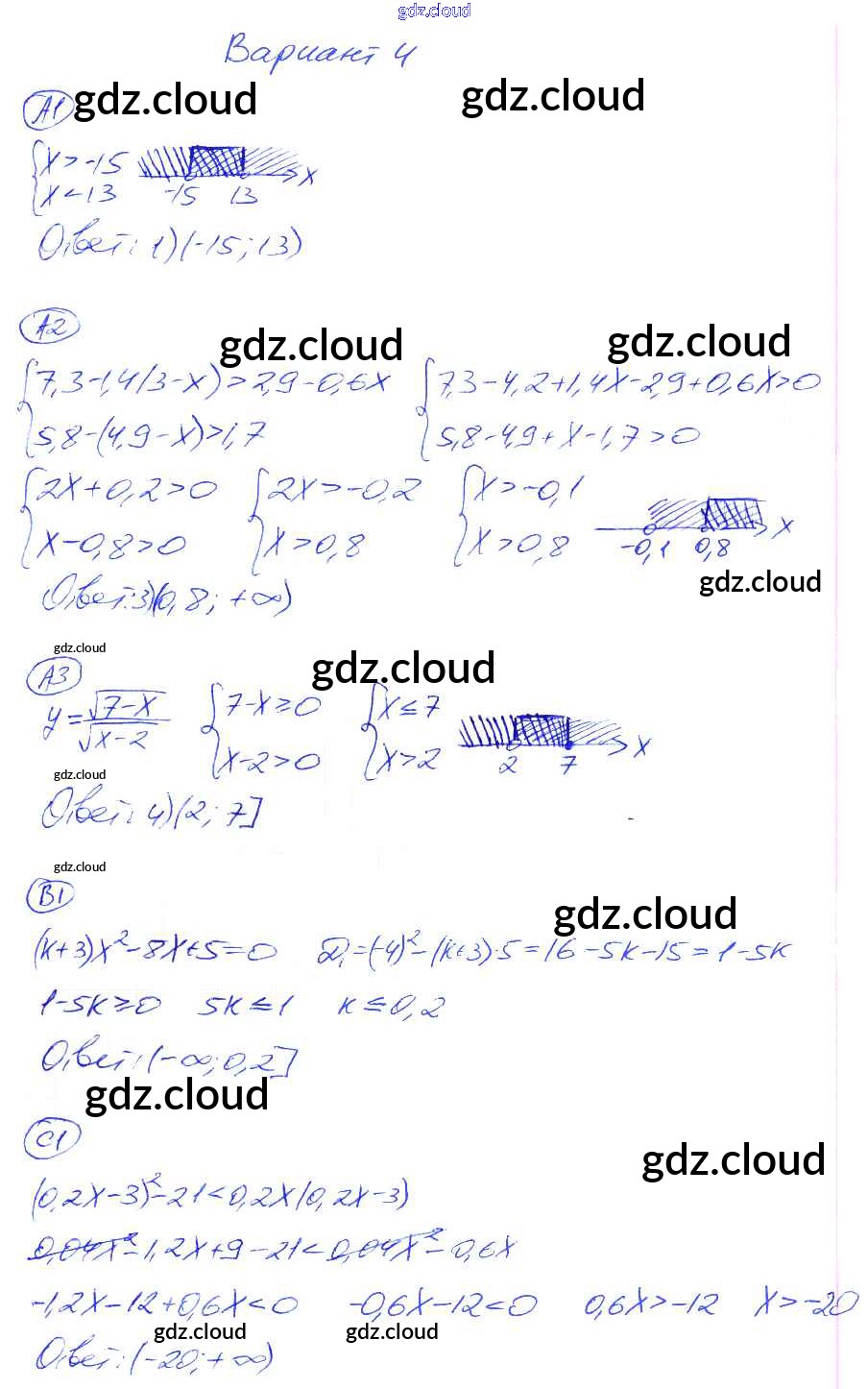 Ответ на задание 4 Самостоятельные и контрольные работы Алгебра за 8 (восьмой) класс Глазков, Гаиашвили УМК 2012
