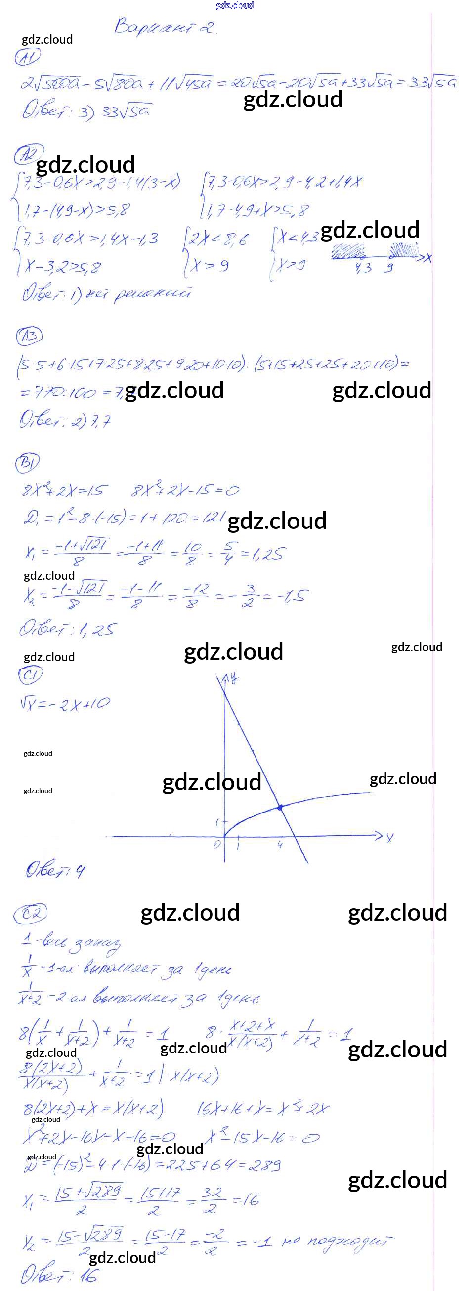 Ответ на задание 2 Самостоятельные и контрольные работы Алгебра за 8 (восьмой) класс Глазков, Гаиашвили УМК 2012