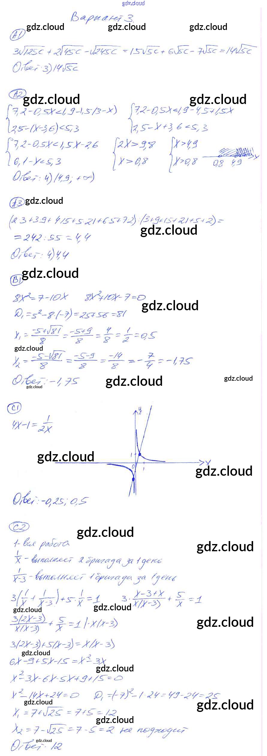 Ответ на задание 3 Самостоятельные и контрольные работы Алгебра за 8 (восьмой) класс Глазков, Гаиашвили УМК 2012