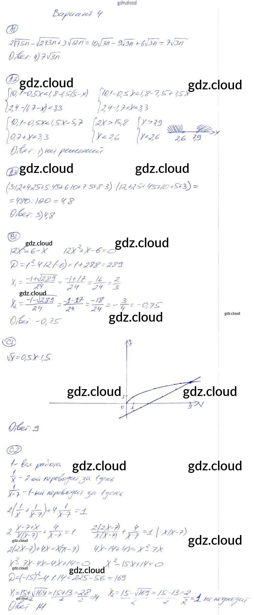 Ответ на задание 4 Самостоятельные и контрольные работы Алгебра за 8 (восьмой) класс Глазков, Гаиашвили УМК 2012