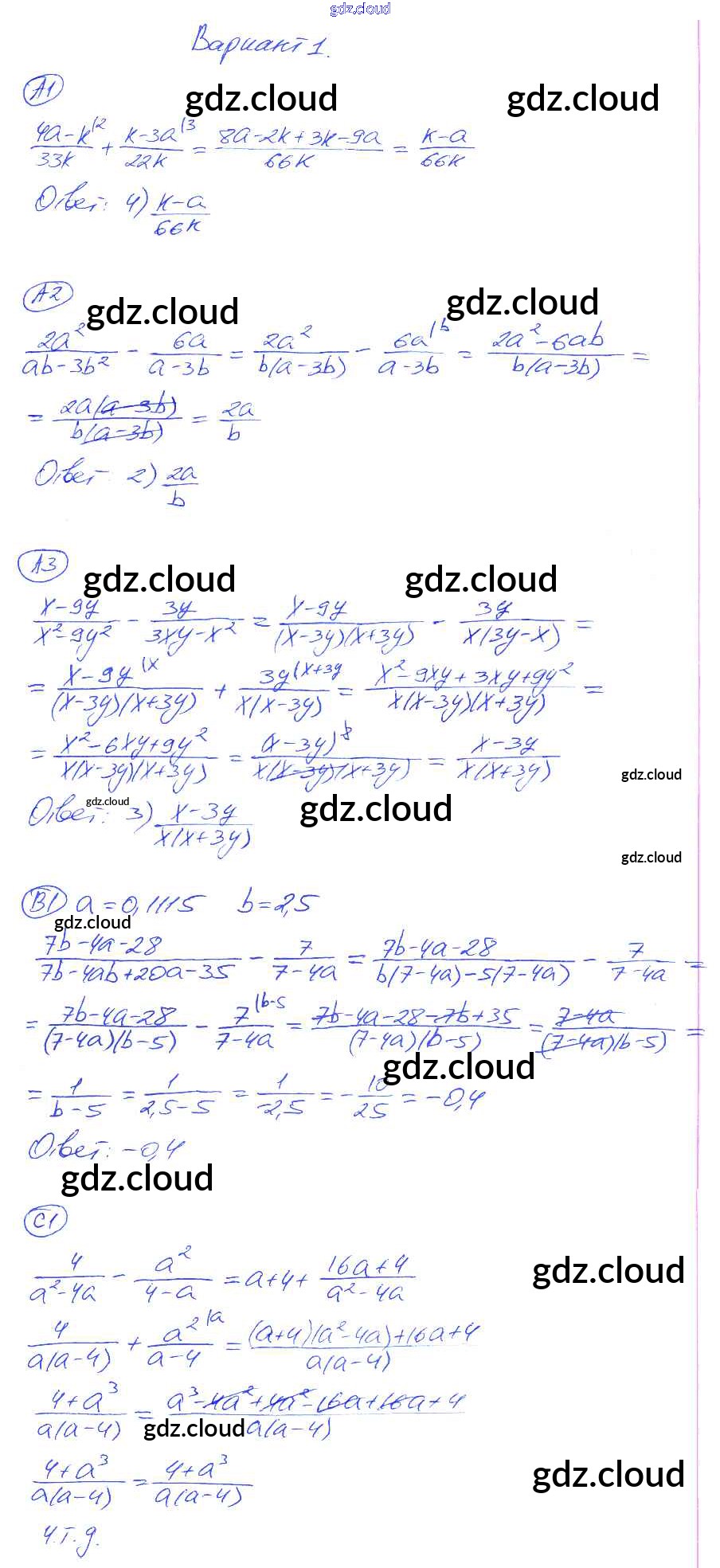 Ответ на задание 1 Самостоятельные и контрольные работы Алгебра за 8 (восьмой) класс Глазков, Гаиашвили УМК 2012