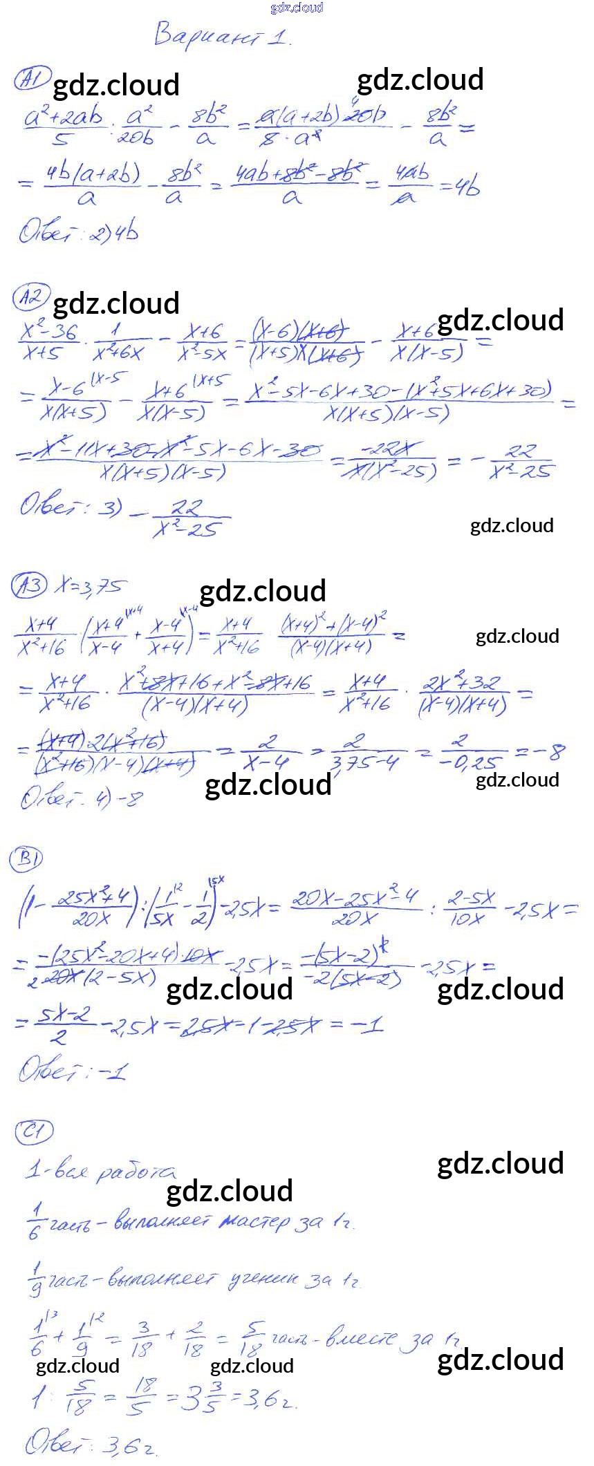 Ответ на задание 1 Самостоятельные и контрольные работы Алгебра за 8 (восьмой) класс Глазков, Гаиашвили УМК 2012