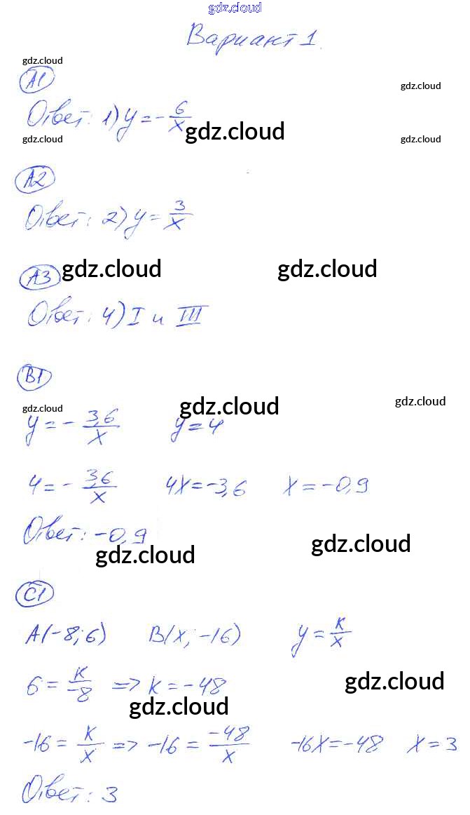 Ответ на задание 1 Самостоятельные и контрольные работы Алгебра за 8 (восьмой) класс Глазков, Гаиашвили УМК 2012