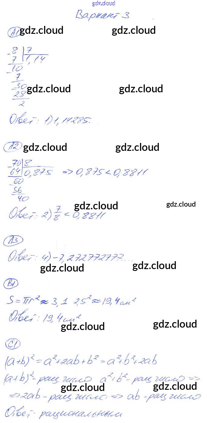 Ответ на задание 3 Самостоятельные и контрольные работы Алгебра за 8 (восьмой) класс Глазков, Гаиашвили УМК 2012