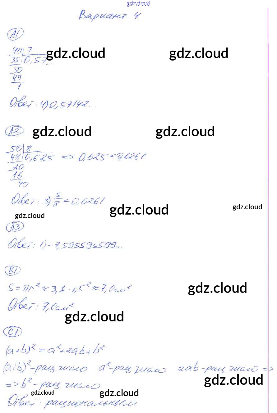 Ответ на задание 4 Самостоятельные и контрольные работы Алгебра за 8 (восьмой) класс Глазков, Гаиашвили УМК 2012
