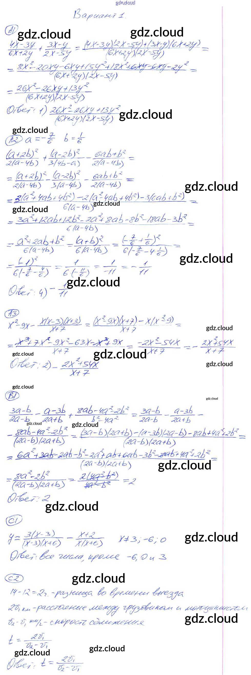 КР-1. Варианты Ответы к Контрольным работам по Алгебре 8 класс Самостоятельные и контрольные работы Глазков УМК Экзамен