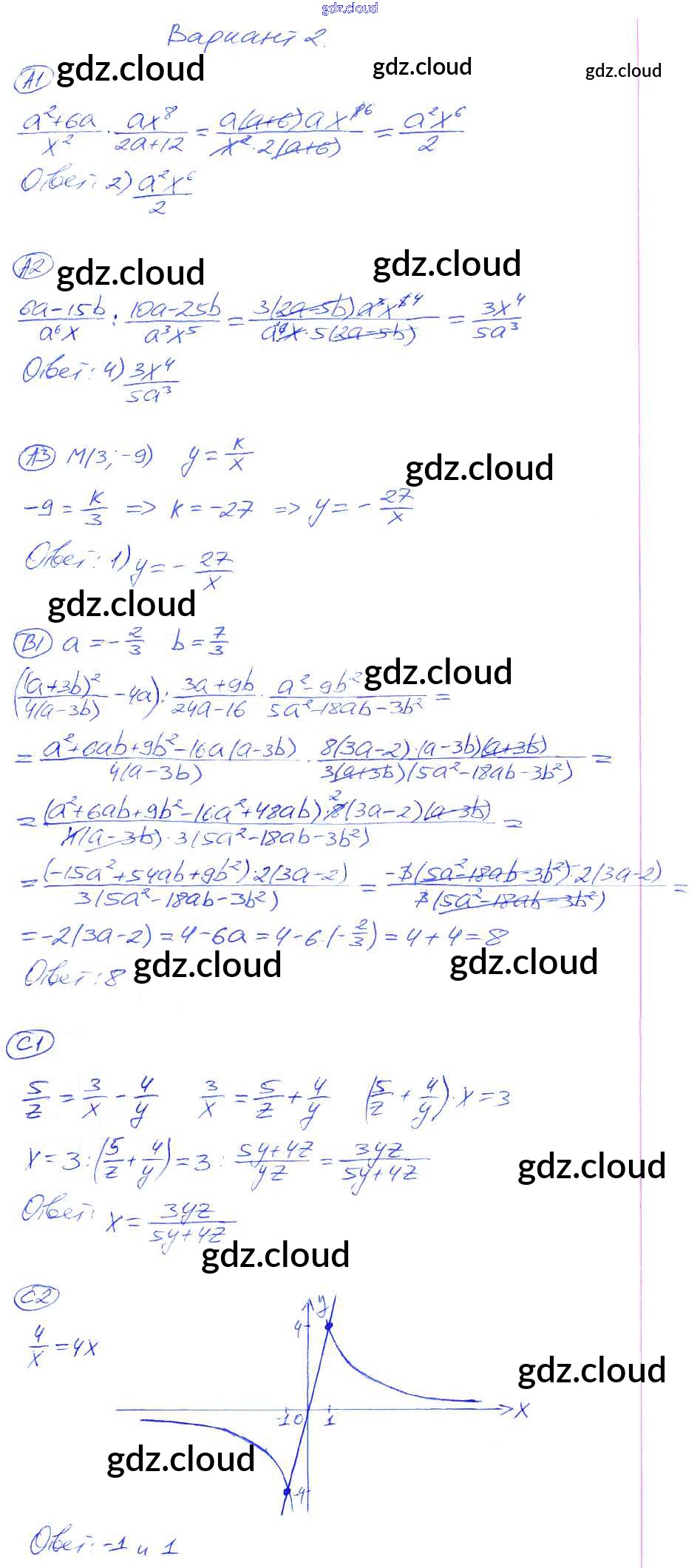 КР-2. Варианты Ответы к Контрольным работам по Алгебре 8 класс Самостоятельные и контрольные работы Глазков УМК Экзамен