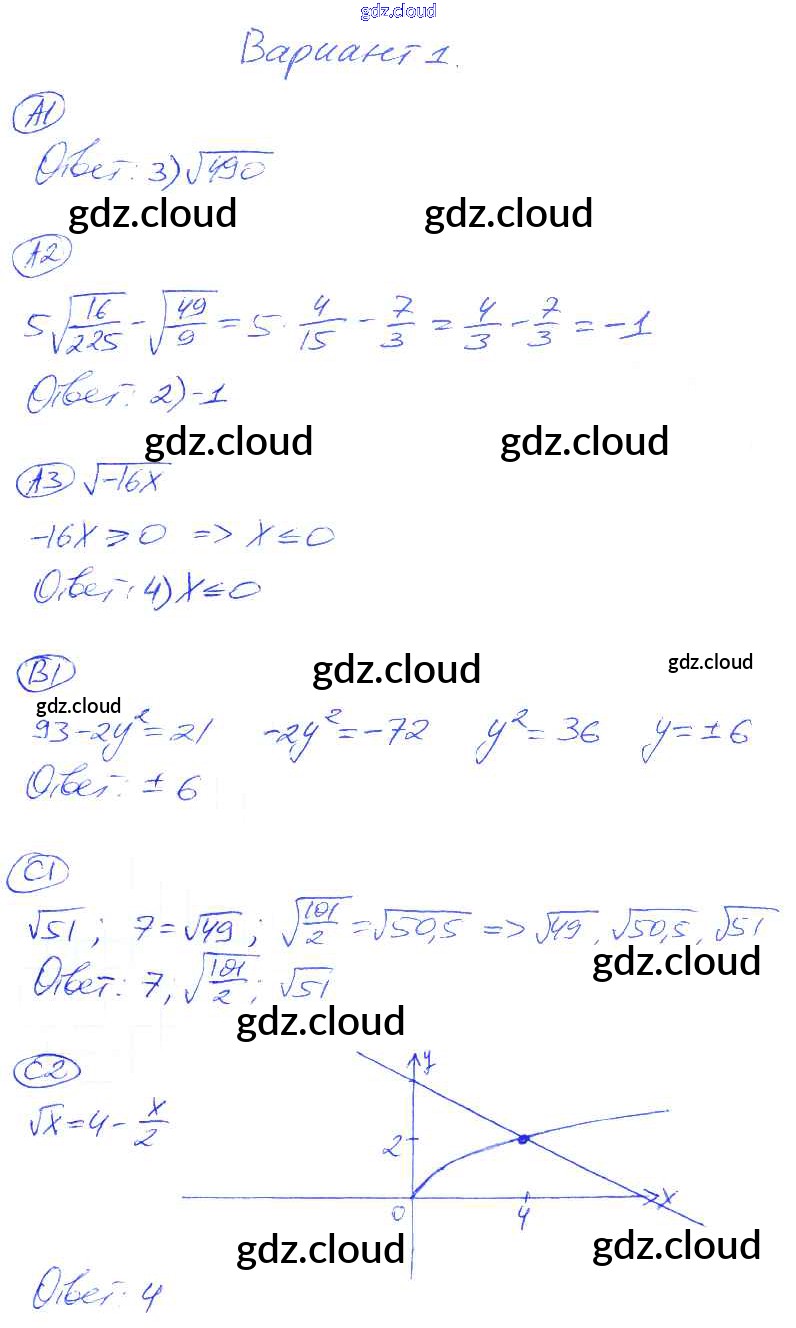 КР-3. Варианты Ответы к Контрольным работам по Алгебре 8 класс Самостоятельные и контрольные работы Глазков УМК Экзамен