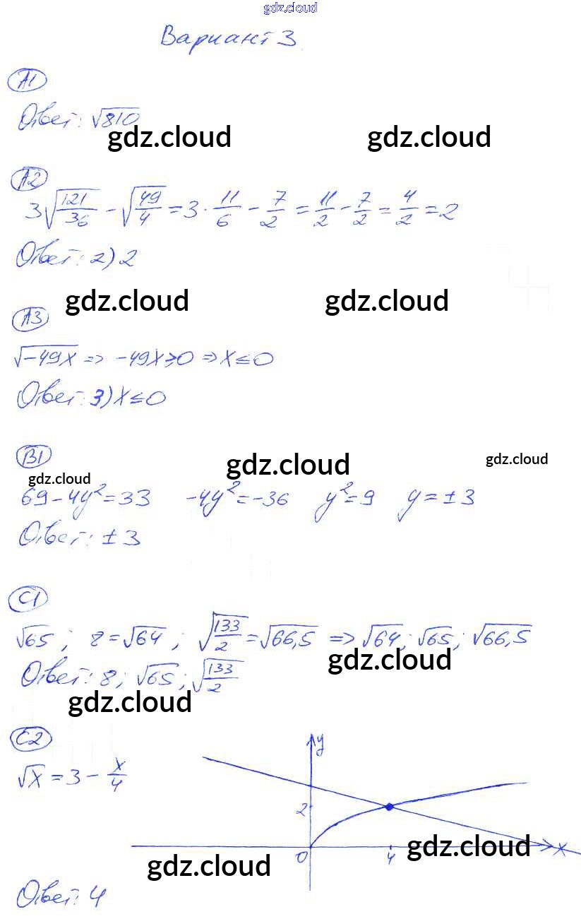 КР-3. Варианты Ответы к Контрольным работам по Алгебре 8 класс Самостоятельные и контрольные работы Глазков УМК Экзамен
