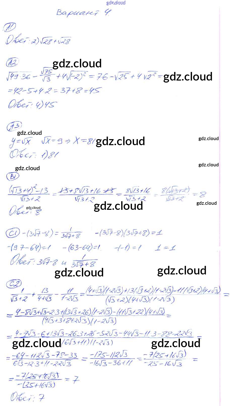 КР-4. Варианты Ответы к Контрольным работам по Алгебре 8 класс Самостоятельные и контрольные работы Глазков УМК Экзамен