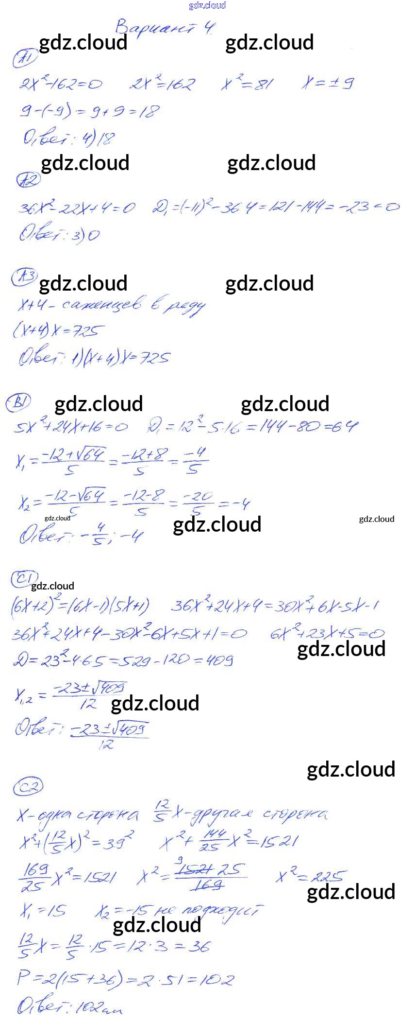 КР-5. Варианты Ответы к Контрольным работам по Алгебре 8 класс Самостоятельные и контрольные работы Глазков УМК Экзамен