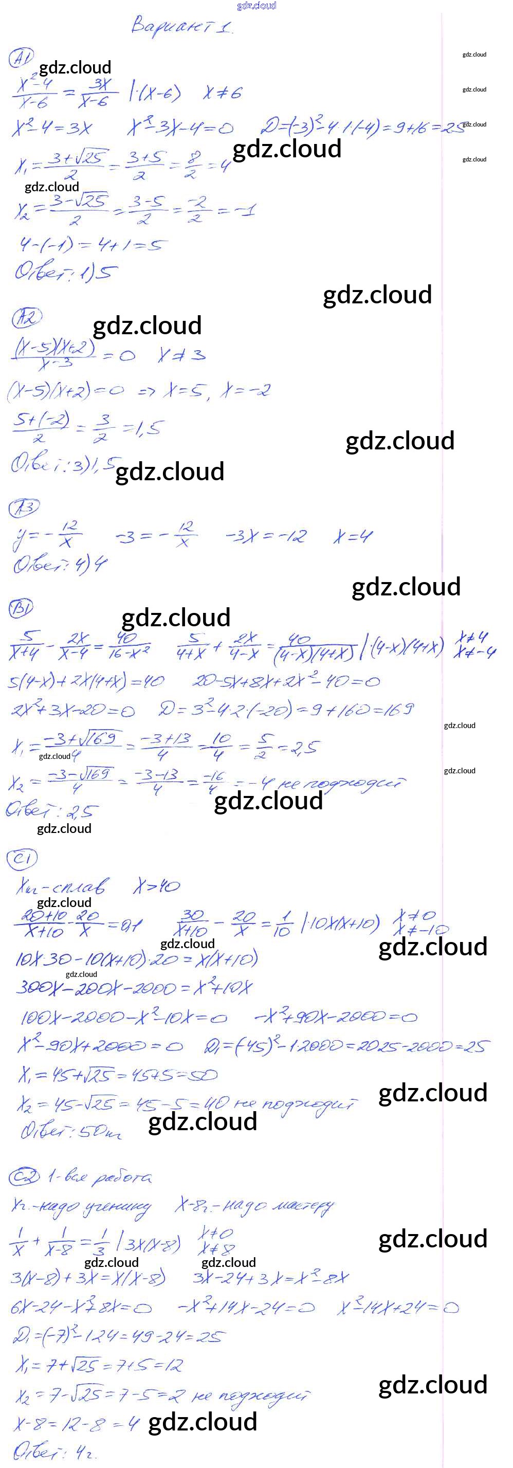 КР-6. Варианты Ответы к Контрольным работам по Алгебре 8 класс Самостоятельные и контрольные работы Глазков УМК Экзамен