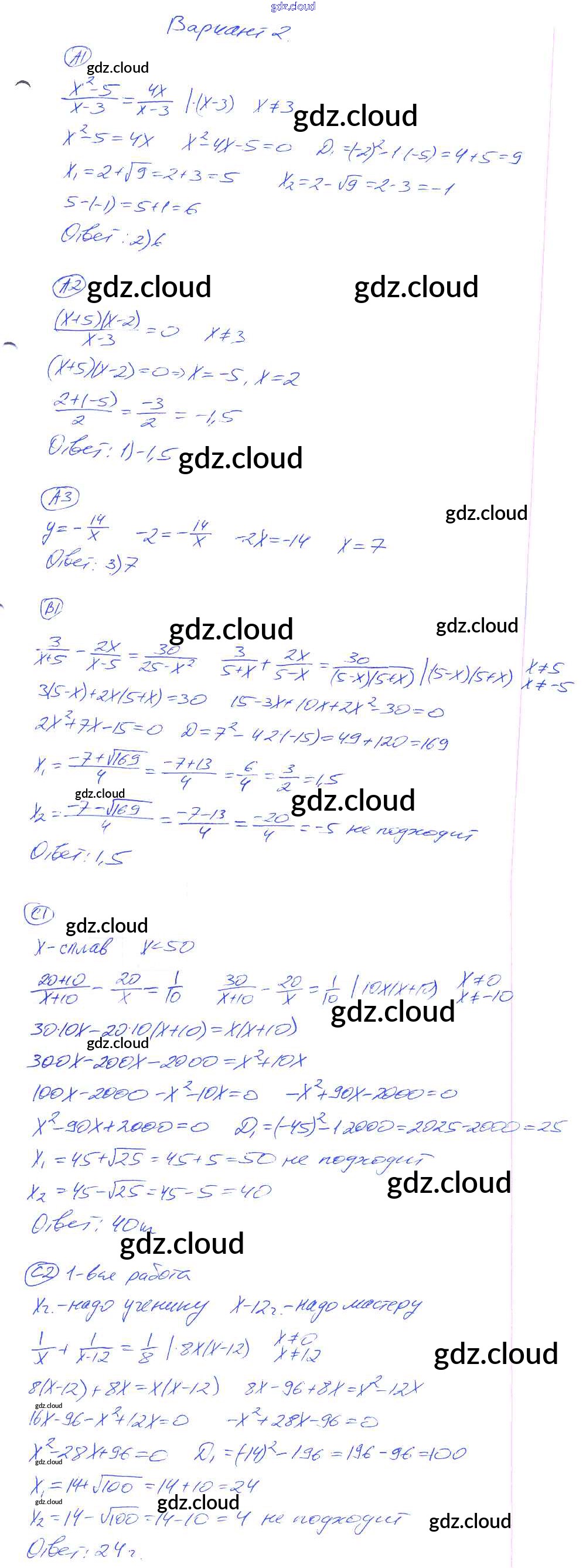 Ответ на задание 2 Самостоятельные и контрольные работы Алгебра за 8 (восьмой) класс Глазков, Гаиашвили УМК 2012