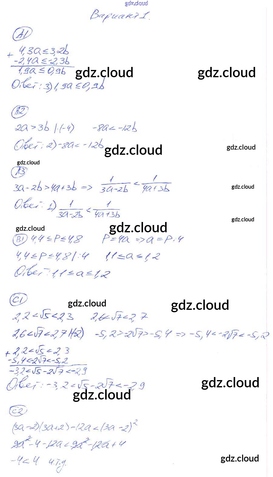 КР-7. Варианты Ответы к Контрольным работам по Алгебре 8 класс Самостоятельные и контрольные работы Глазков УМК Экзамен