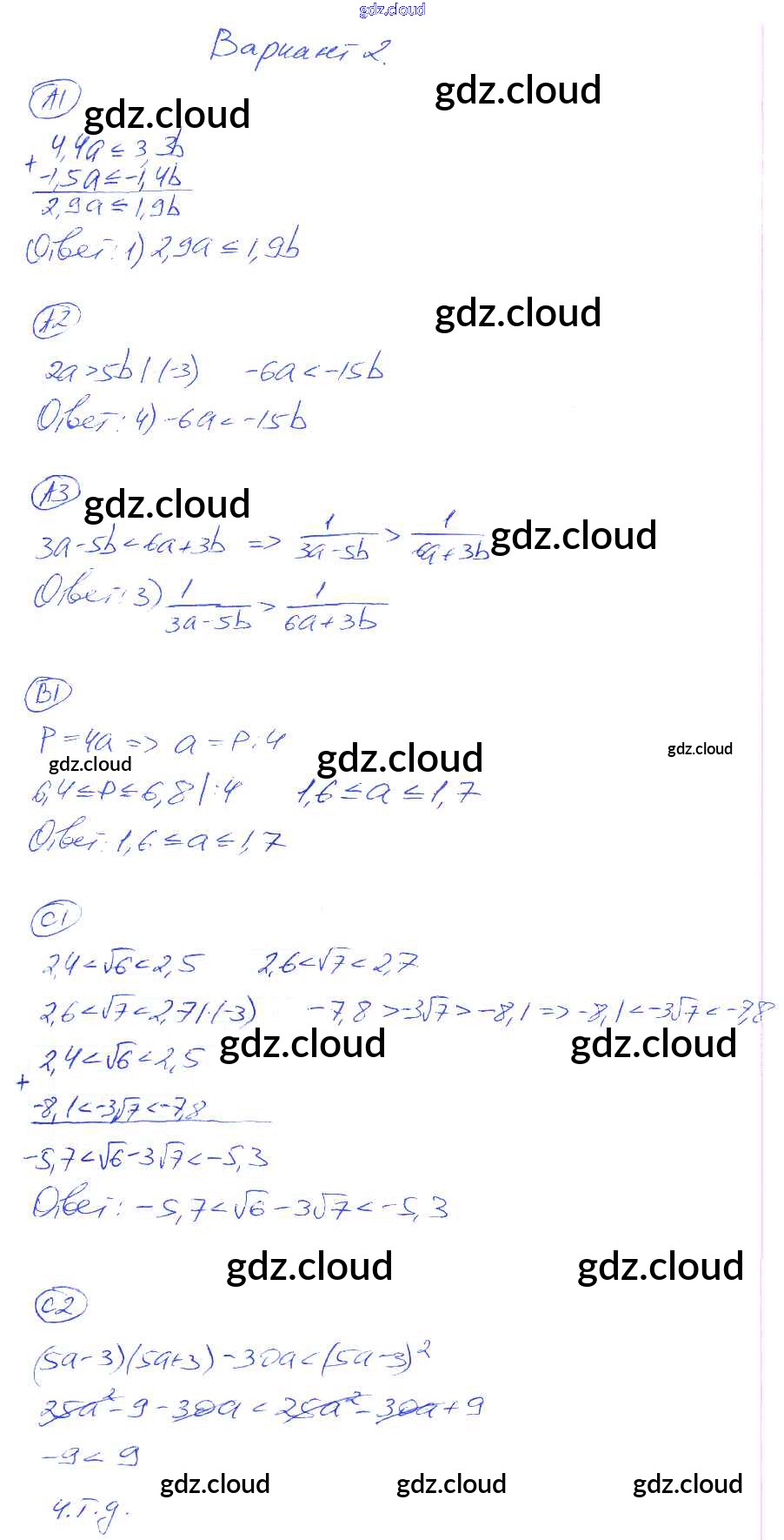 Ответ на задание 2 Самостоятельные и контрольные работы Алгебра за 8 (восьмой) класс Глазков, Гаиашвили УМК 2012