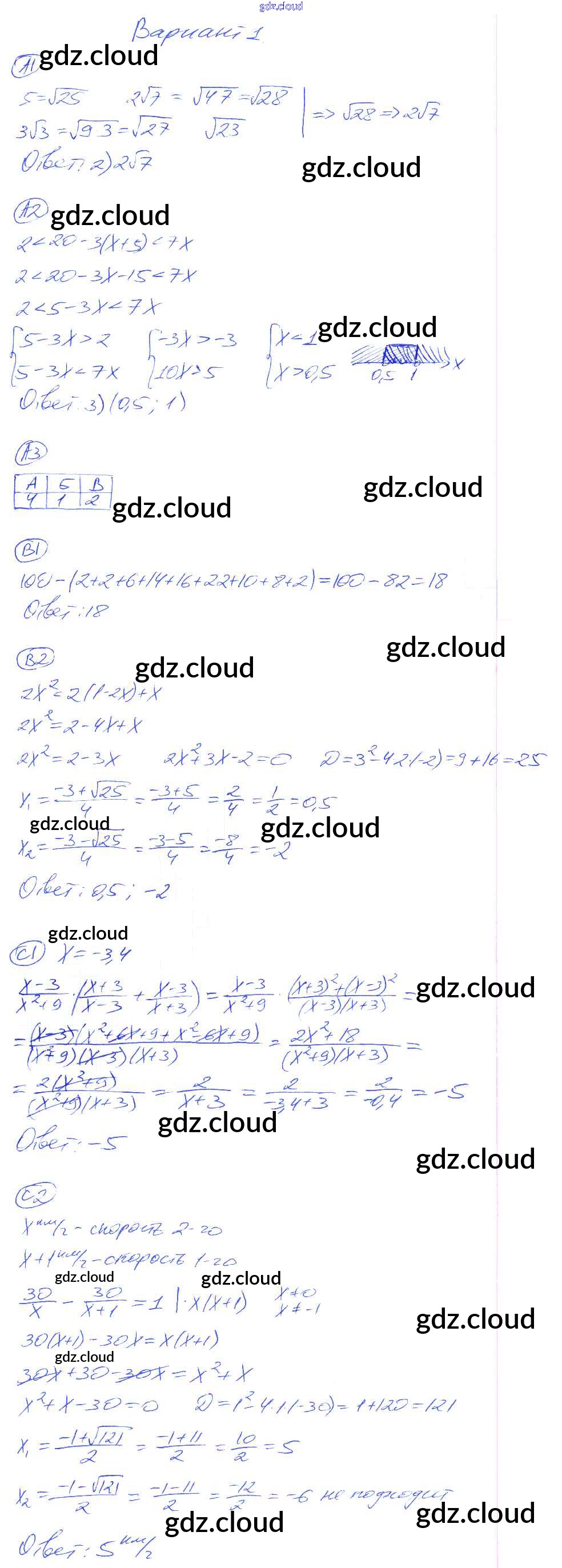 КР-9. Варианты Ответы к Контрольным работам по Алгебре 8 класс Самостоятельные и контрольные работы Глазков УМК Экзамен