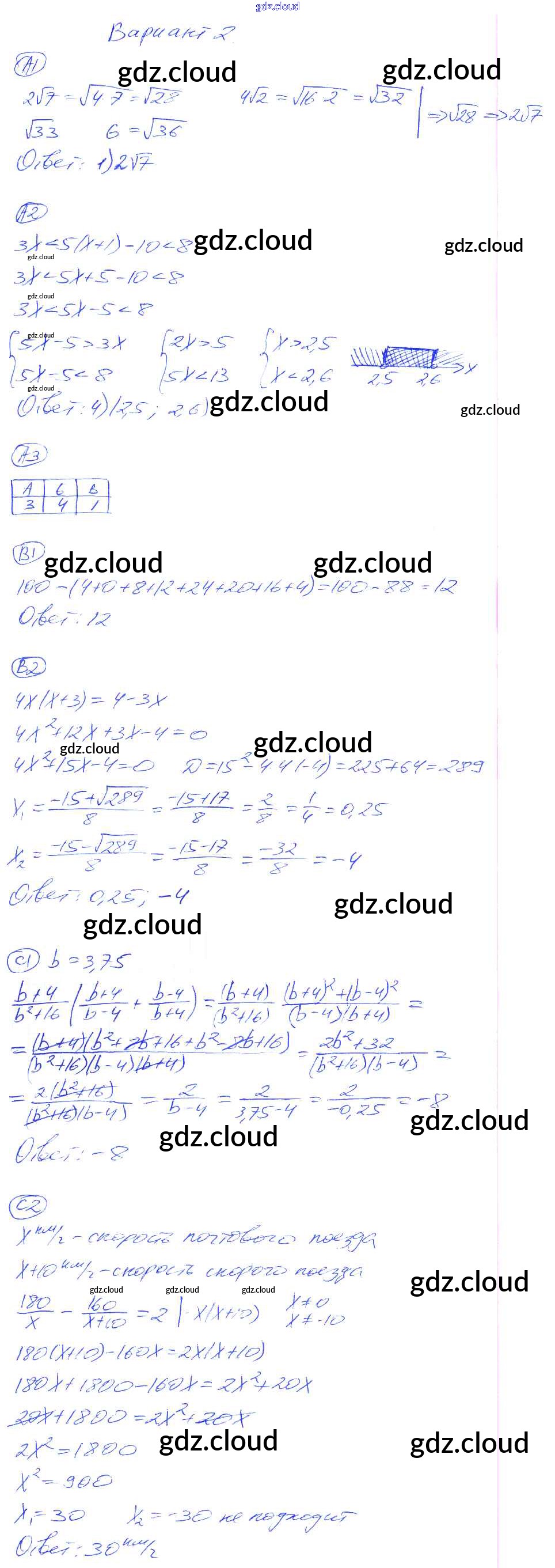 КР-9. Варианты Ответы к Контрольным работам по Алгебре 8 класс Самостоятельные и контрольные работы Глазков УМК Экзамен