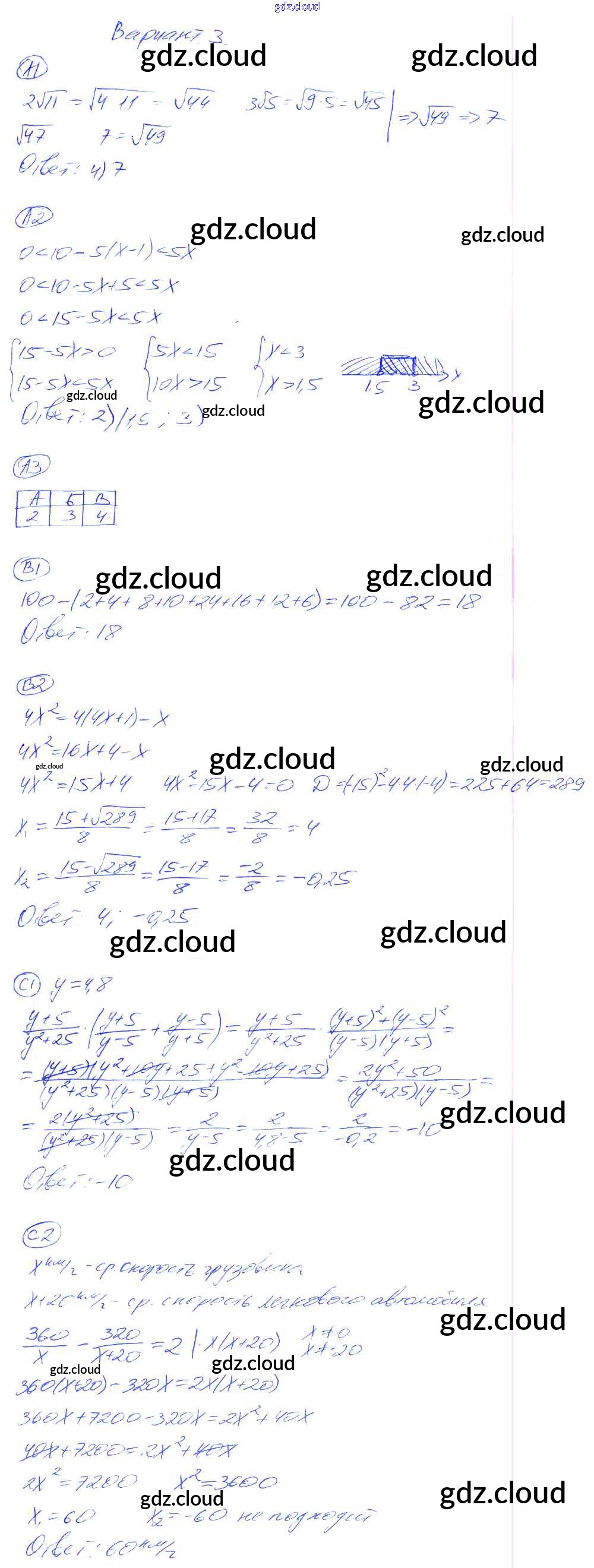 Ответ на задание 3 Самостоятельные и контрольные работы Алгебра за 8 (восьмой) класс Глазков, Гаиашвили УМК 2012