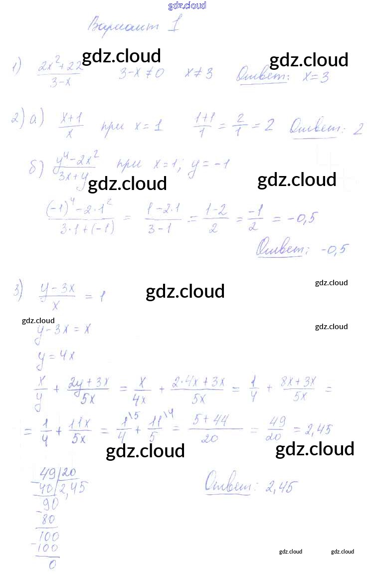 Ответ на задание 1 Контрольные и самостоятельные работы Алгебра за 8 (восьмой) класс Попов УМК 2016
