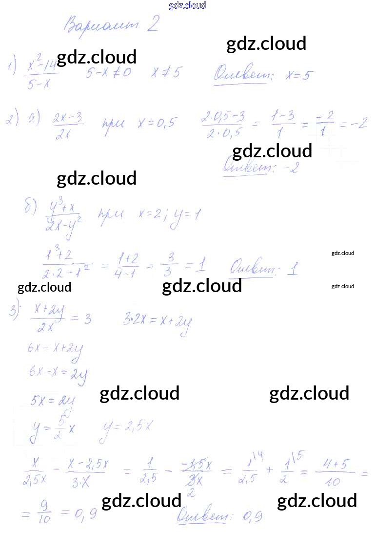 Ответ на задание 2 Контрольные и самостоятельные работы Алгебра за 8 (восьмой) класс Попов УМК 2016