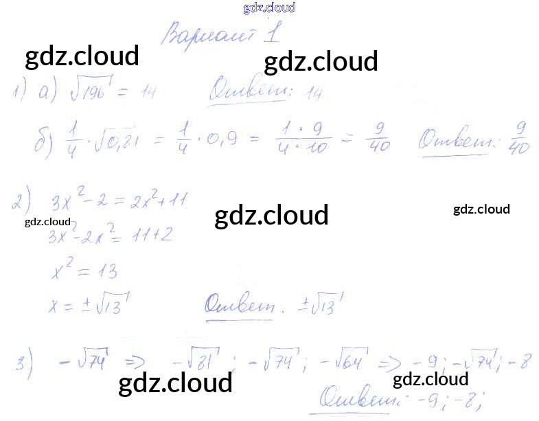 СР-10. Варианты Ответы к Самостоятельным работам по Алгебре 8 класс Контрольные и самостоятельные работы Попов УМК Экзамен