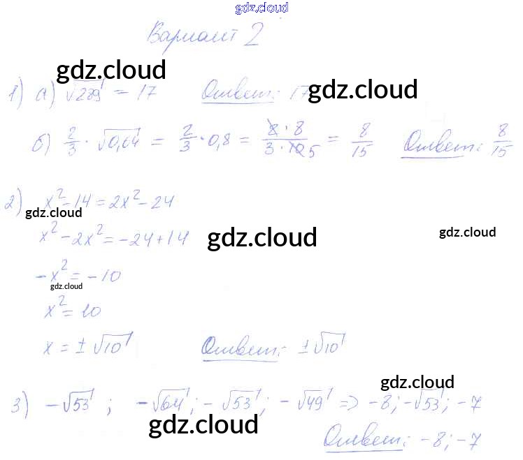 СР-10. Варианты Ответы к Самостоятельным работам по Алгебре 8 класс Контрольные и самостоятельные работы Попов УМК Экзамен